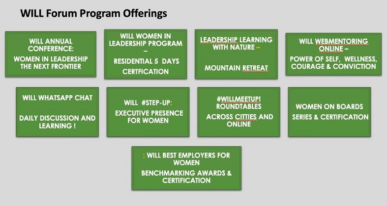 The "Forum for Women in Leadership", WILL Forum India-- is a unique and deeply committed mandate that will bring together senior women executives in leadership positions from across corporate India for an open dialogue on their aspirations, opportunities, nurturing mind-sets, mentoring and harnessing the rewards of collective thinking for improving the workplace in the coming years.